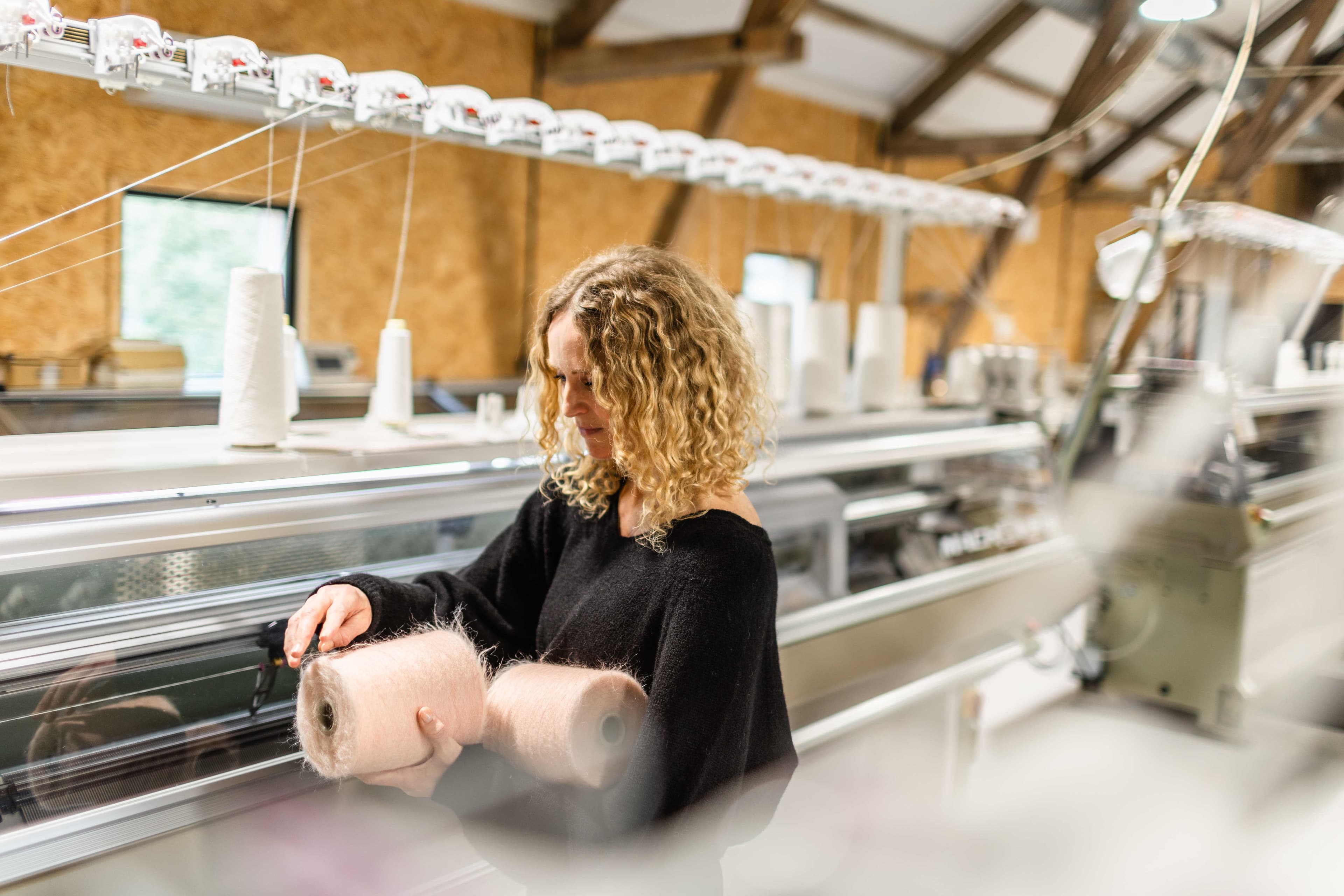 Varer fra vår egen fabrikk tilbys som en del av våre kolleksjoner. Siden maskinene ble levert har vi vært i en lærerik etableringsprosess. Produksjonsarbeidet består av mye testing, programmering av oppskrifter, drift av maskinene - og fjerning av tråder, pressing og damping når plaggene er strikket opp.